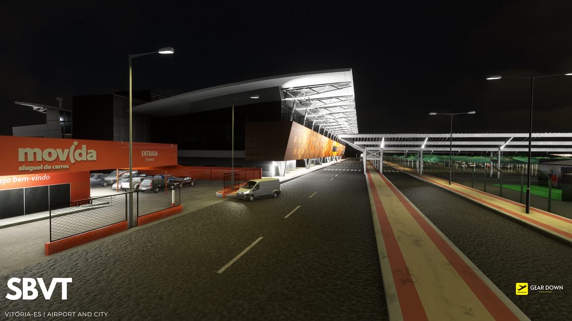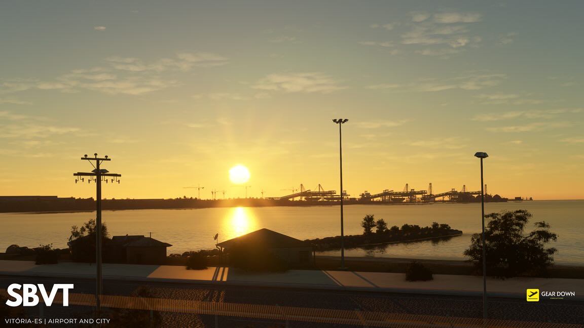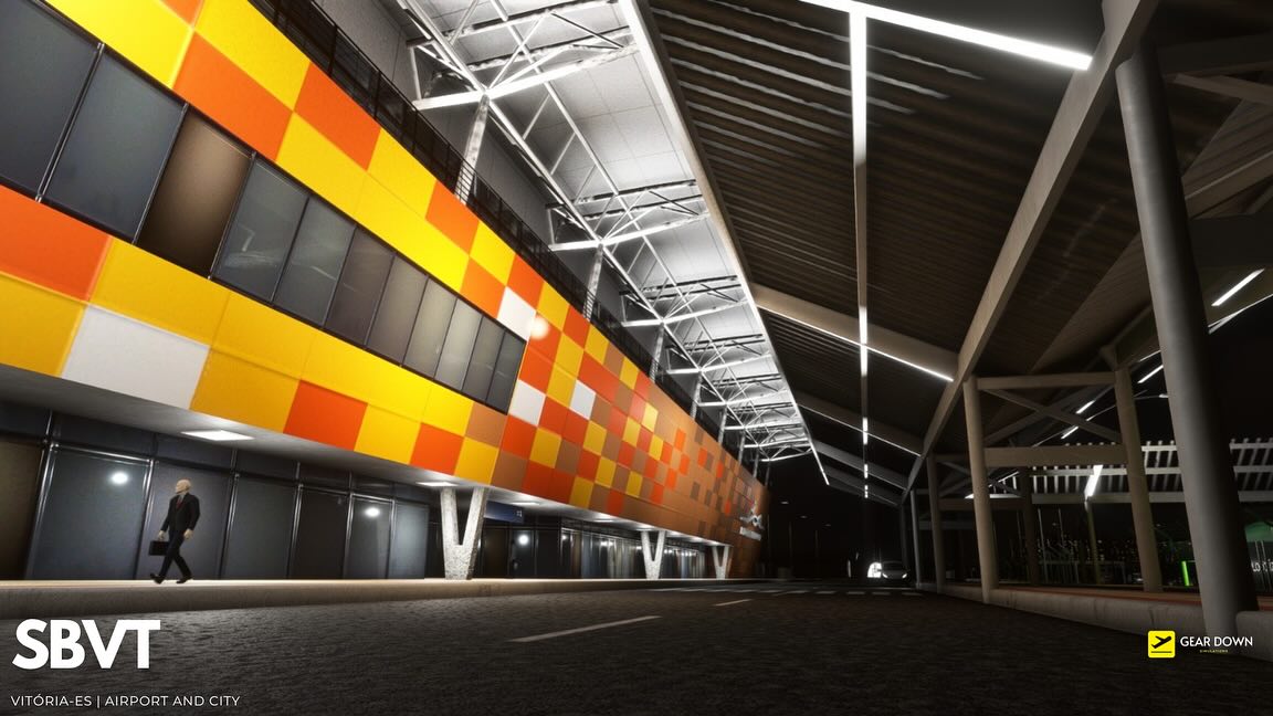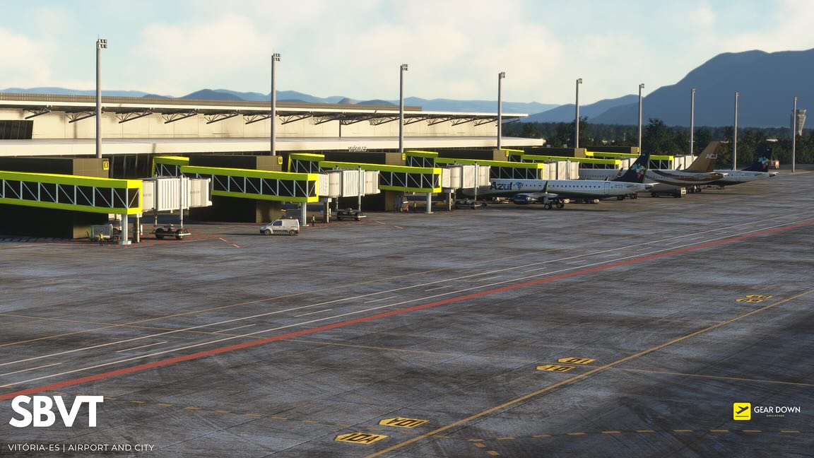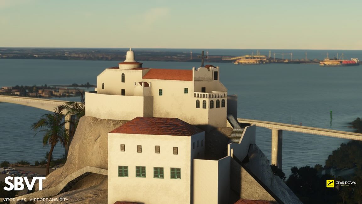 Geardown模擬提供了第一個屏幕截圖即將到來的勝利機場和城市套餐,包括歐洲人薩爾斯機場(SBVT)和附近的巴西城市維特里亞市。