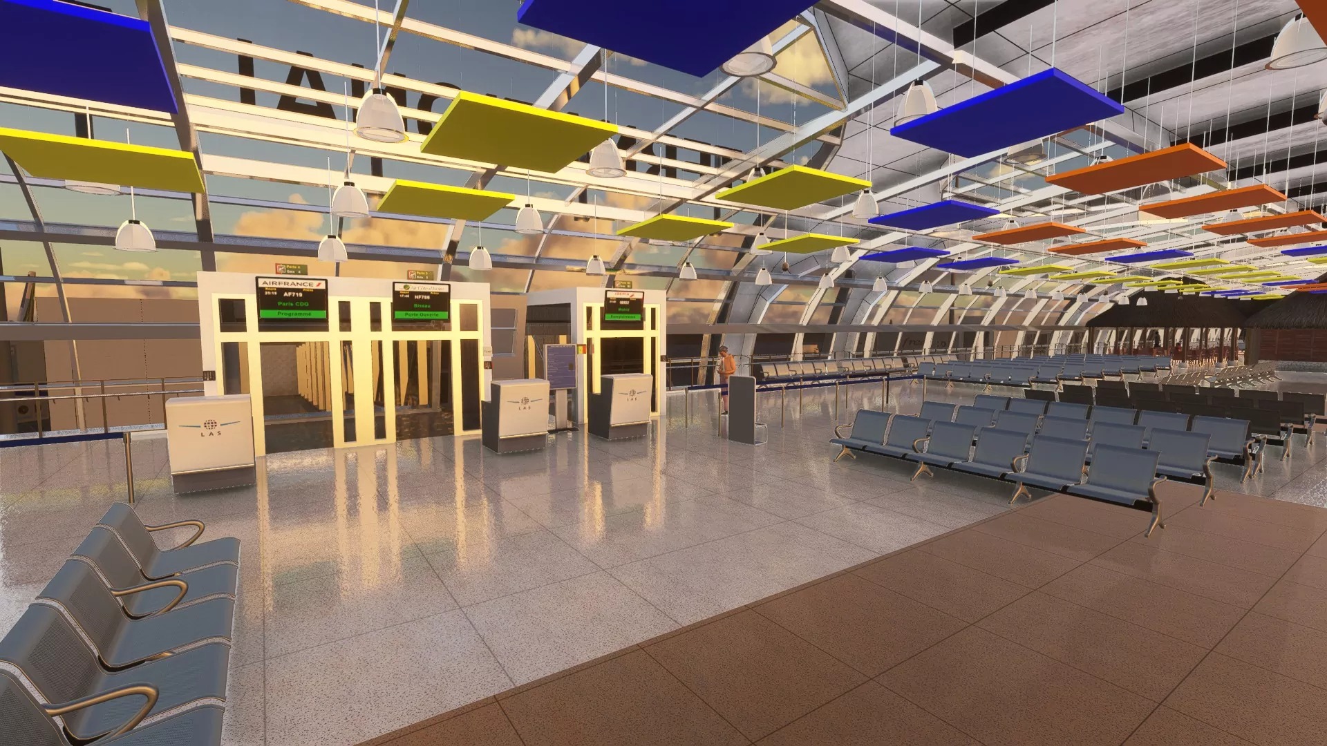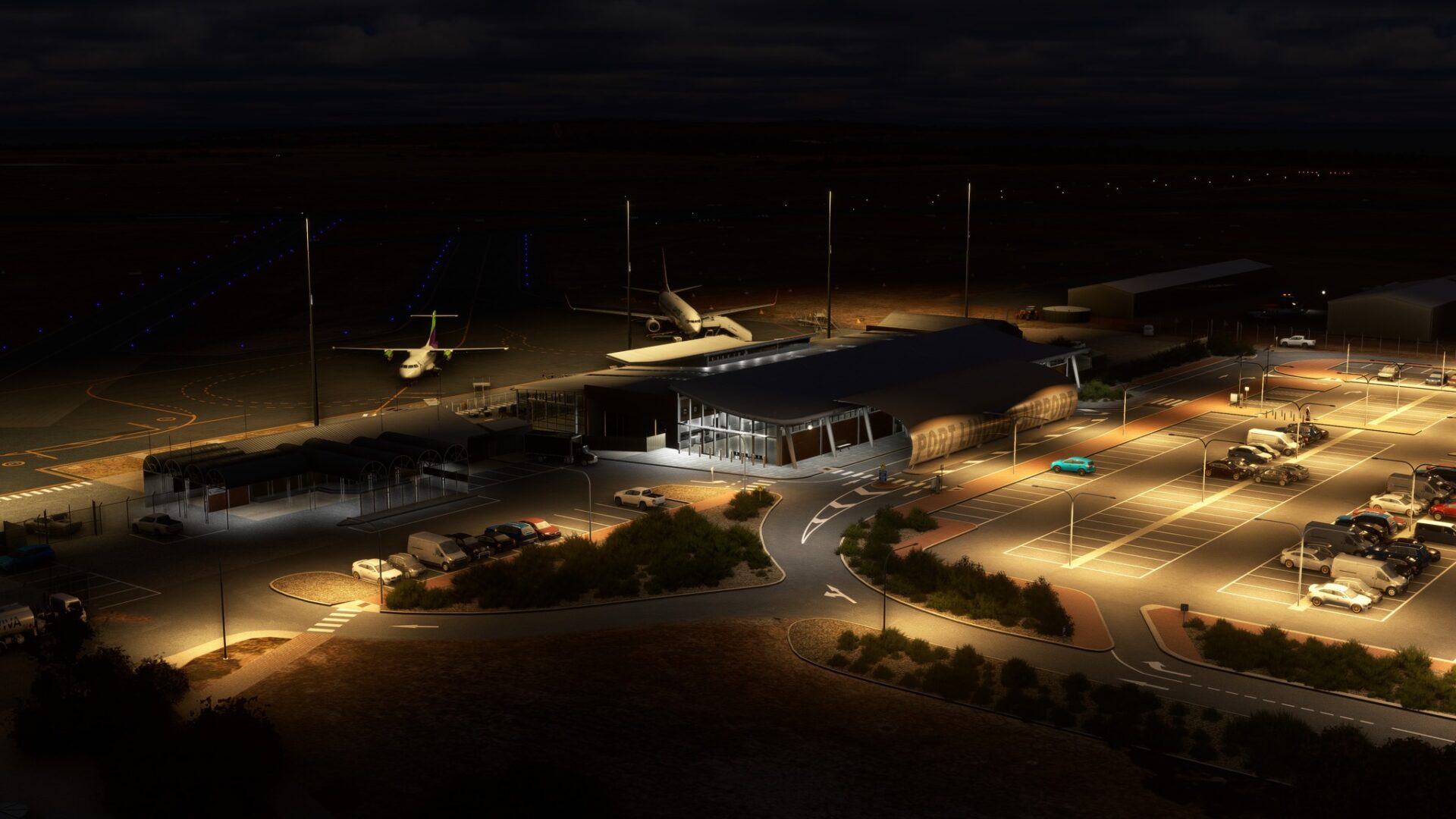 - 整個機場環境令人驚嘆的照明,可實現身臨其境的夜間運營。