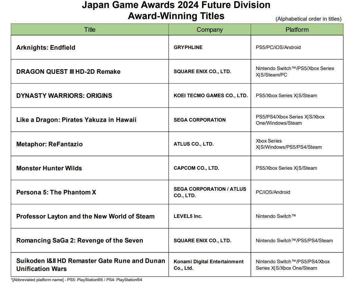 今天我們還看到了日本遊戲大賞未來部門獲獎遊戲的公佈。