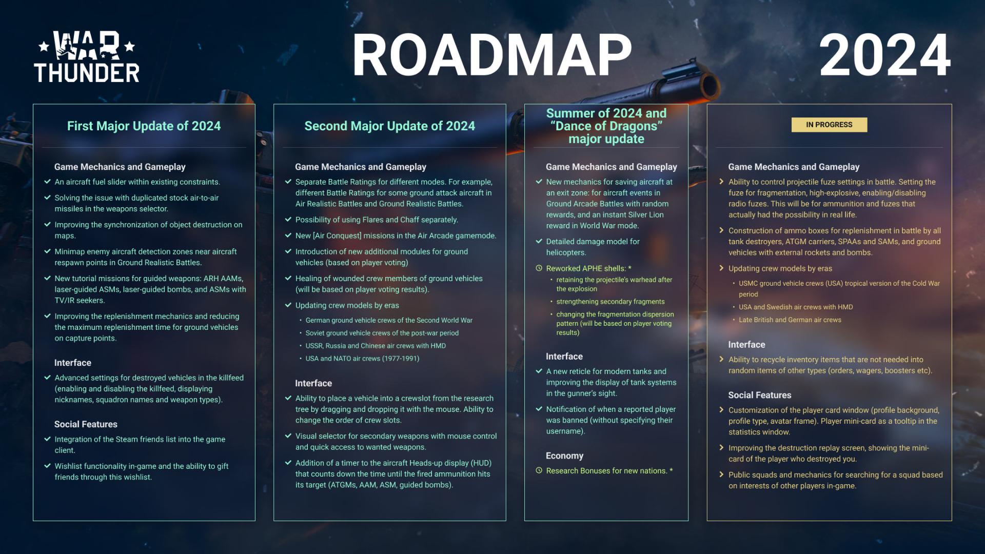 今年晚些時候,戰爭雷霆隊仍有變化。 2024年的路線圖仍然有幾個社交功能,遊戲模型更新和計劃的遊戲機制。