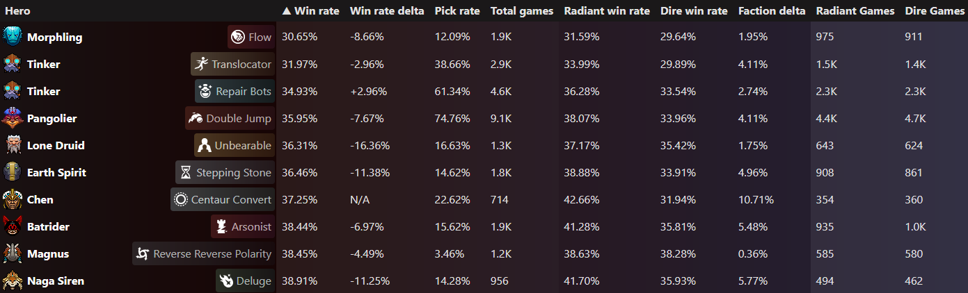 這頂級失敗者補丁是變形和流動方面。他的獲勝率是30.65%。