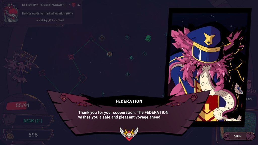 作為該類型的粉絲,我特別喜歡所有可以讓你根據自己的喜好調整套牌的細微差別。有粉碎和流放等機制。粉碎的卡牌一旦玩完就會永久離開你的牌組,而放逐的卡牌可以在每場戰鬥中使用一次,並在隨後的戰鬥中返回。您還可以通過接受並成功完成賞金狩獵來獲得方便的新特徵,例如每回合獲得免費卡牌或削弱人口密集的敵人。這些涉及做一些事情,比如驚人的 X 數量的敵人、殖民行星或擊敗特定的敵人。它們通常非常具有挑戰性,但如果不冒一點風險,《Zet Zillions》就不會帶來回報。